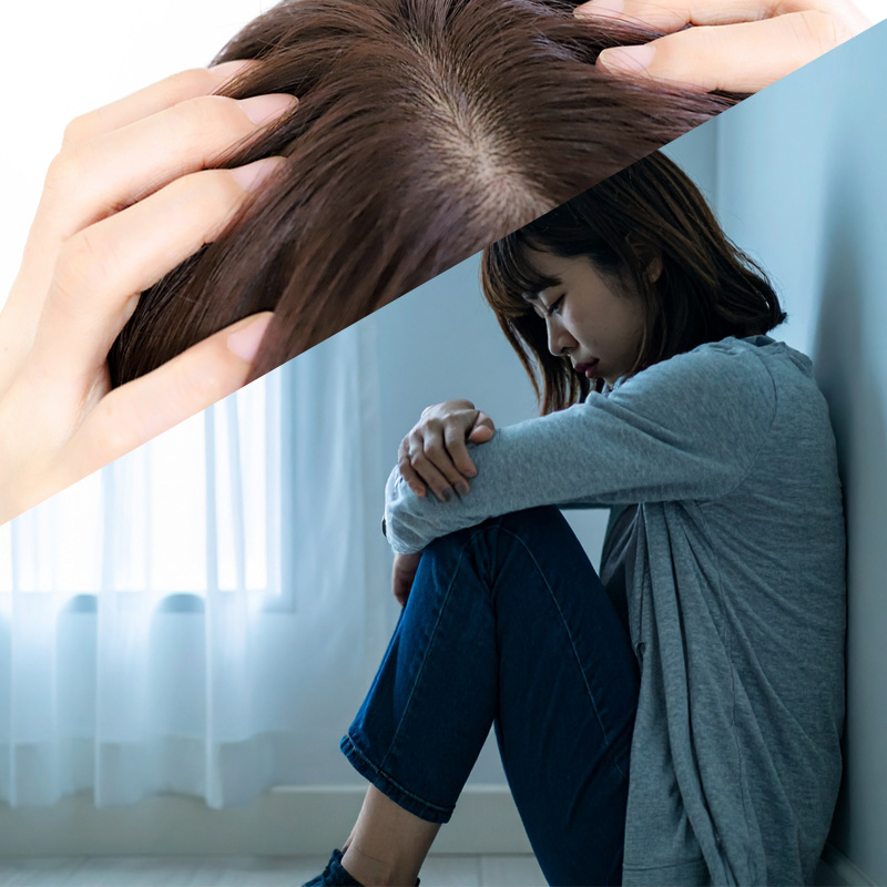 10代前後で発症してから20代、30代、40代と継続する割合が非常に高いのも特徴であり軽度の抜⽑症であれば自然に改善する場合もありますが、重度の場は非常に改善が困難なのです。にもかかわらず、正式には病気として成立しておらず薬物療法も確立していないのが⼤きな問題です。最近ではスクールカウンセラー、⽪膚科、心療内科、精神科からのご紹介も増加傾向にあります。
